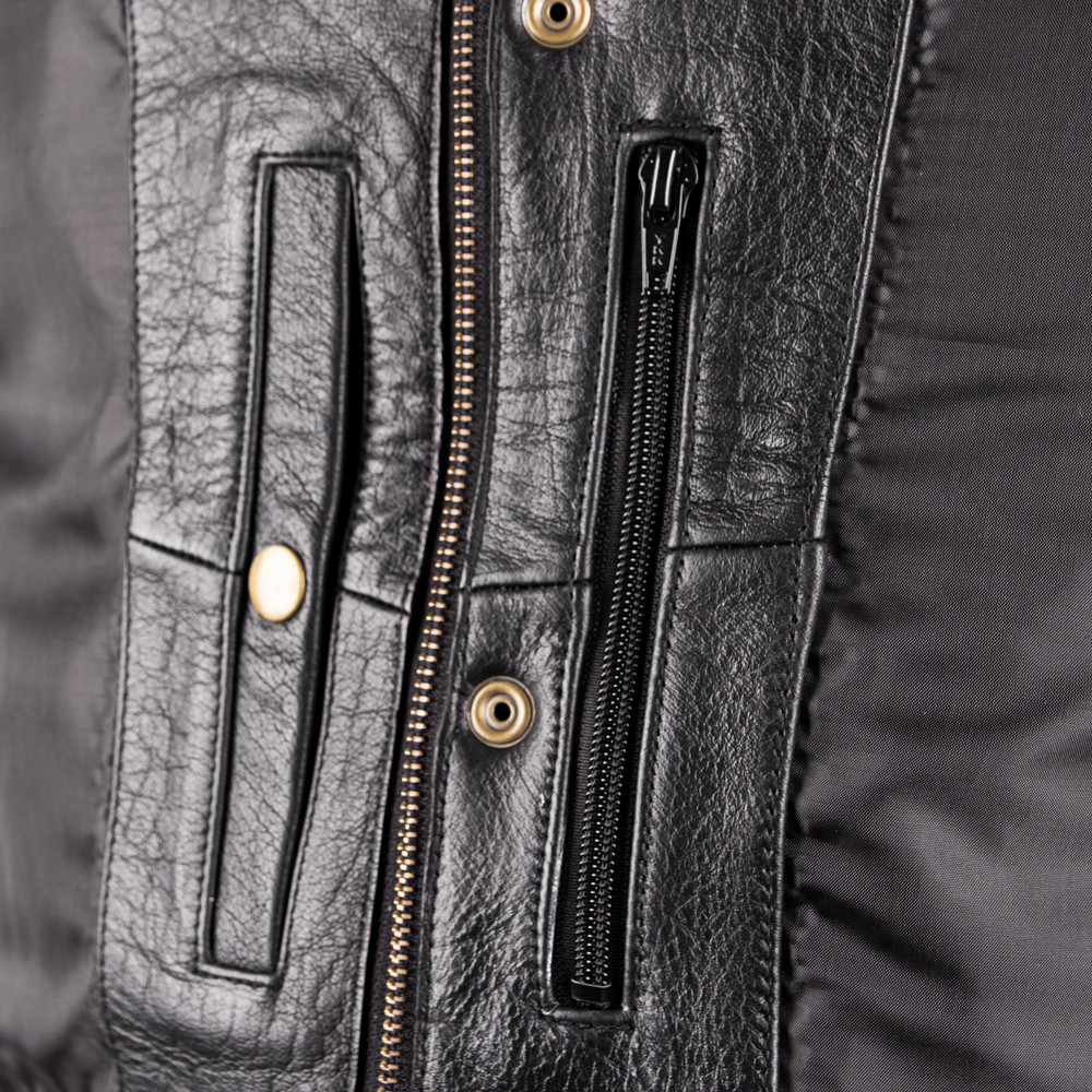 Inchiderea vestei se face cu fermoar si capse. Cele 6 buzunare ofera suficient spatiu pentru obiectele personale in timp ce 2 dintre ele sunt aflate la interior, fiind astfel perfecte pentru pastrarea actelor. Celelalte 4 buzunare sunt localizate pe lateral si doua la nivelul pieptului.