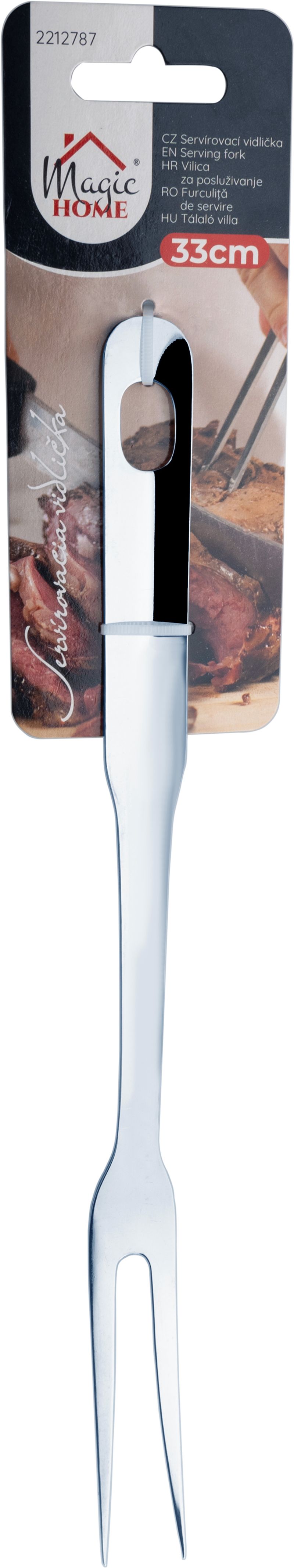 Servírovacia vidlička MagicHome vhodná na každodenné použitie v kuchyni. Je vyrobená z kvalitnej nehrdzavejúcej ocele. Disponuje dierou na zavesenie. Rozmery: 33x2,3x2,5 cm.