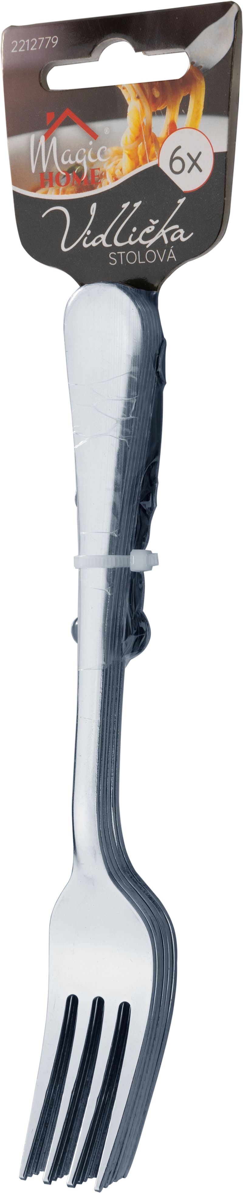Stolová vidlička MagicHome pre každodenné použitie. Je vyrobená z kvalitnej nehrdzavejúcej ocele. Balenie obsahuje 6 ks vidličiek.