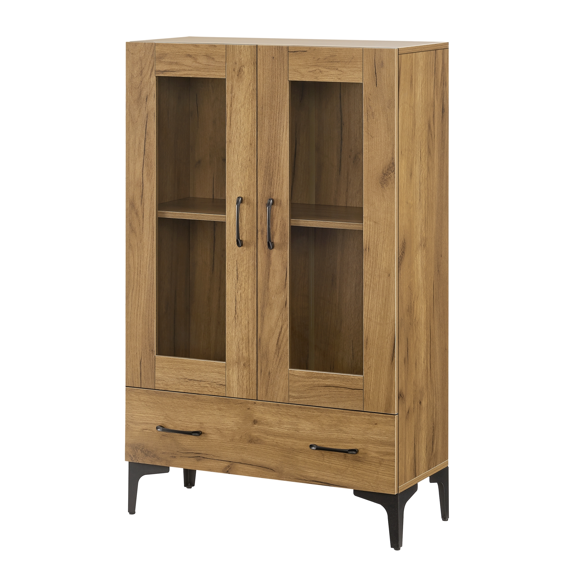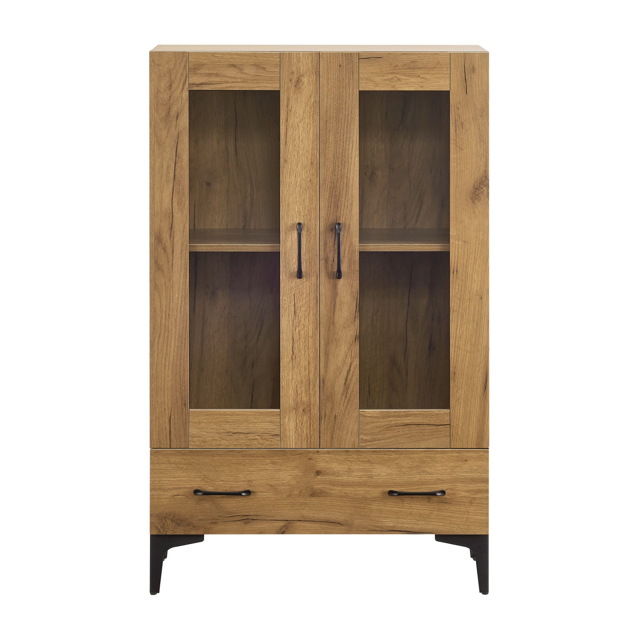 Vitrină living cu 2 uși din sticlă și sertar, finisaj stejar