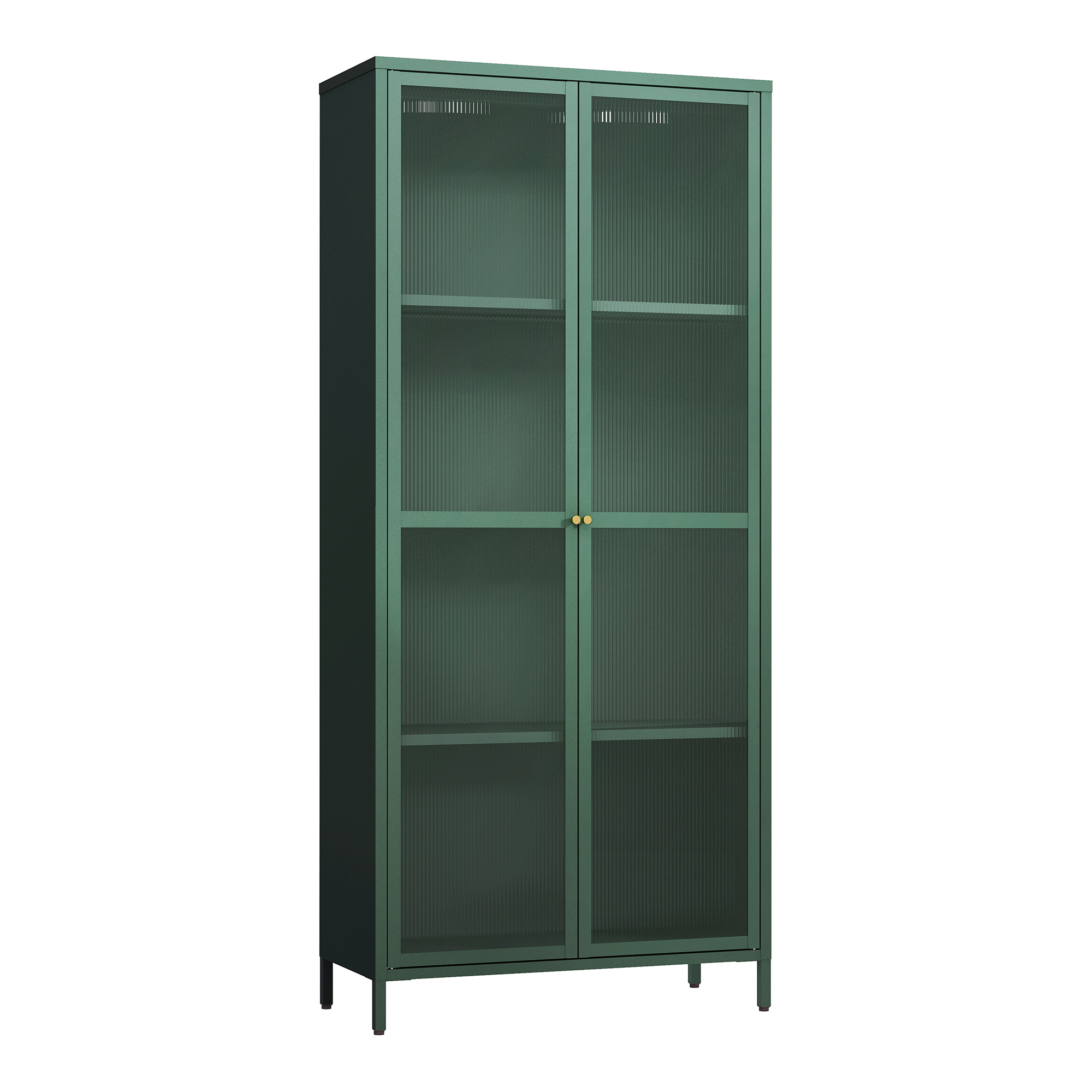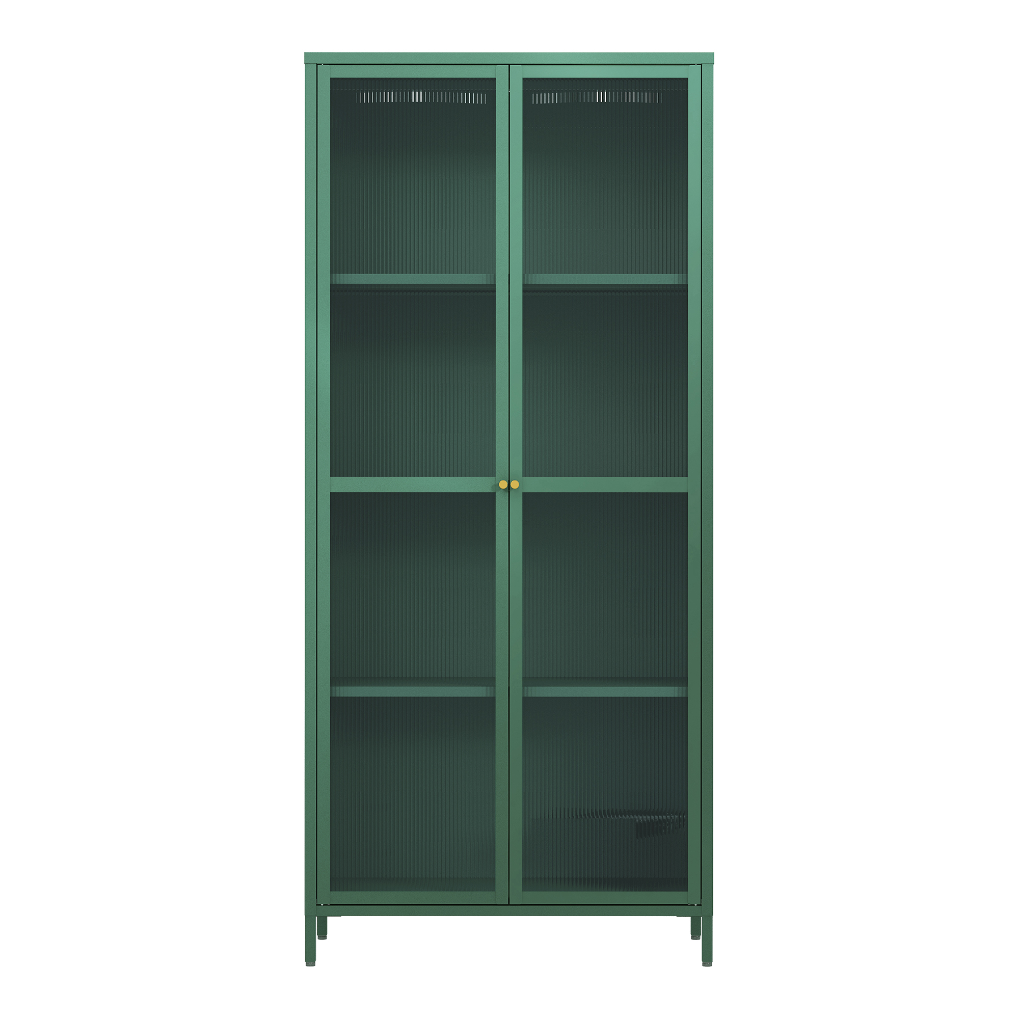 Vitrină living din metal verde cu sticlă striată – o piesă de mobilier elegantă și practică, potrivită pentru amenajări moderne, retro sau industriale. Cu un design suplu și finisaj verde brad, această vitrină pentru living oferă spațiu generos pentru organizarea veselei, cărților, decorațiunilor sau altor obiecte pe care vrei să le păstrezi la îndemână, dar și protejate.