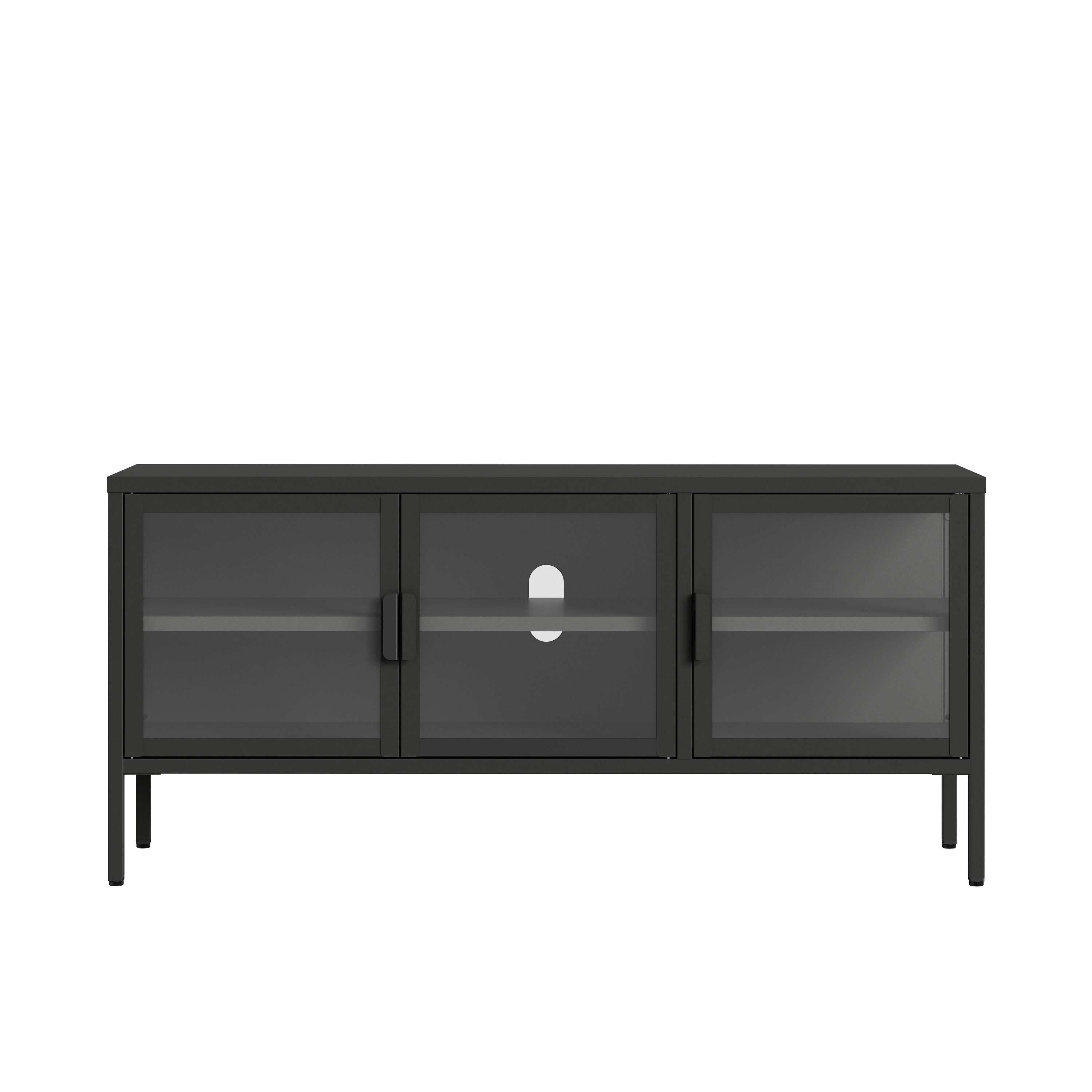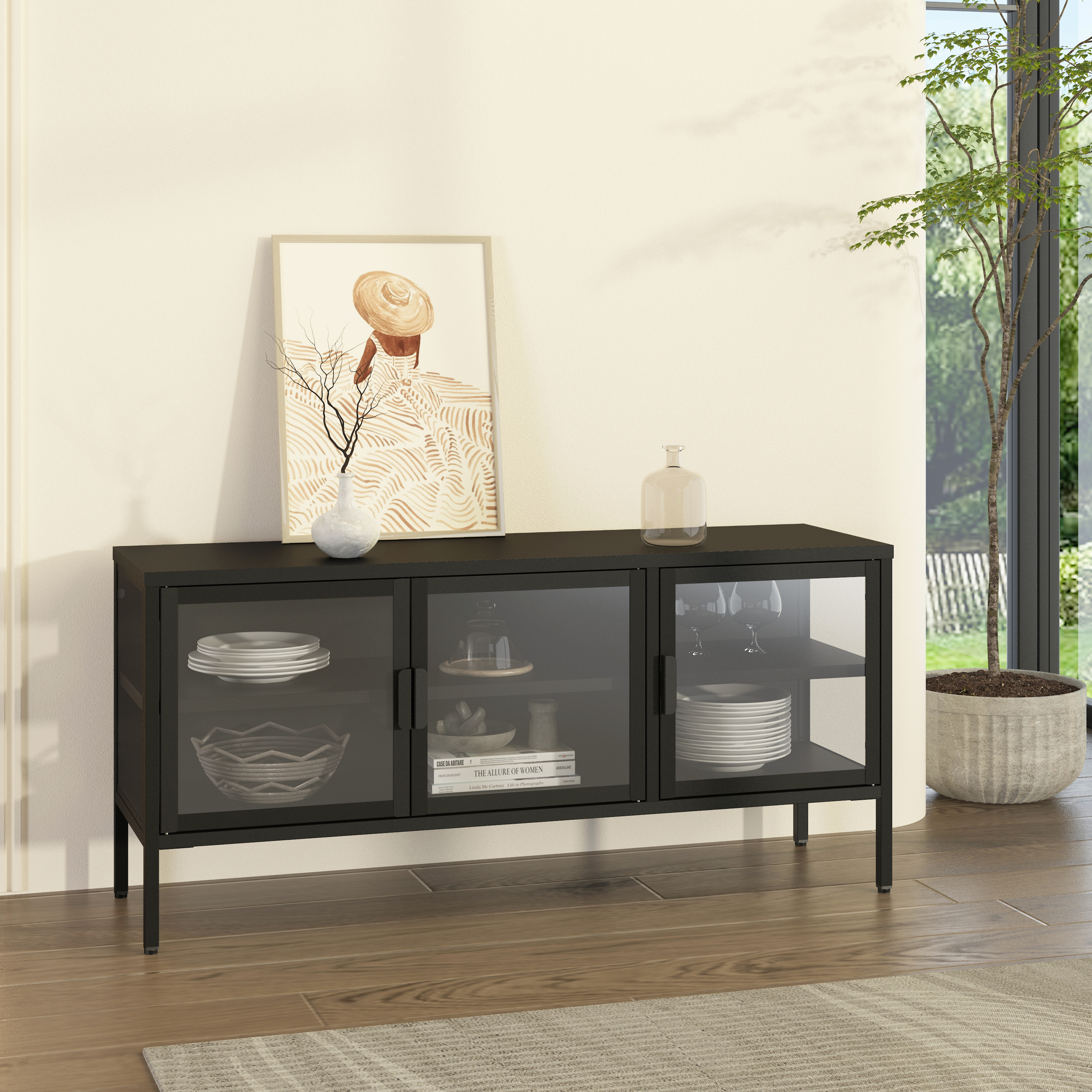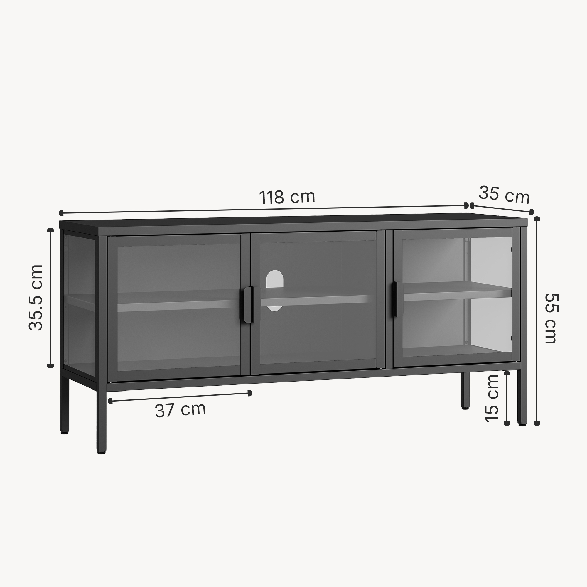 Vitrinen-Sideboard Borshavisa Stahl 3-türig 55x118x35 cm Schwarz [en.casa]