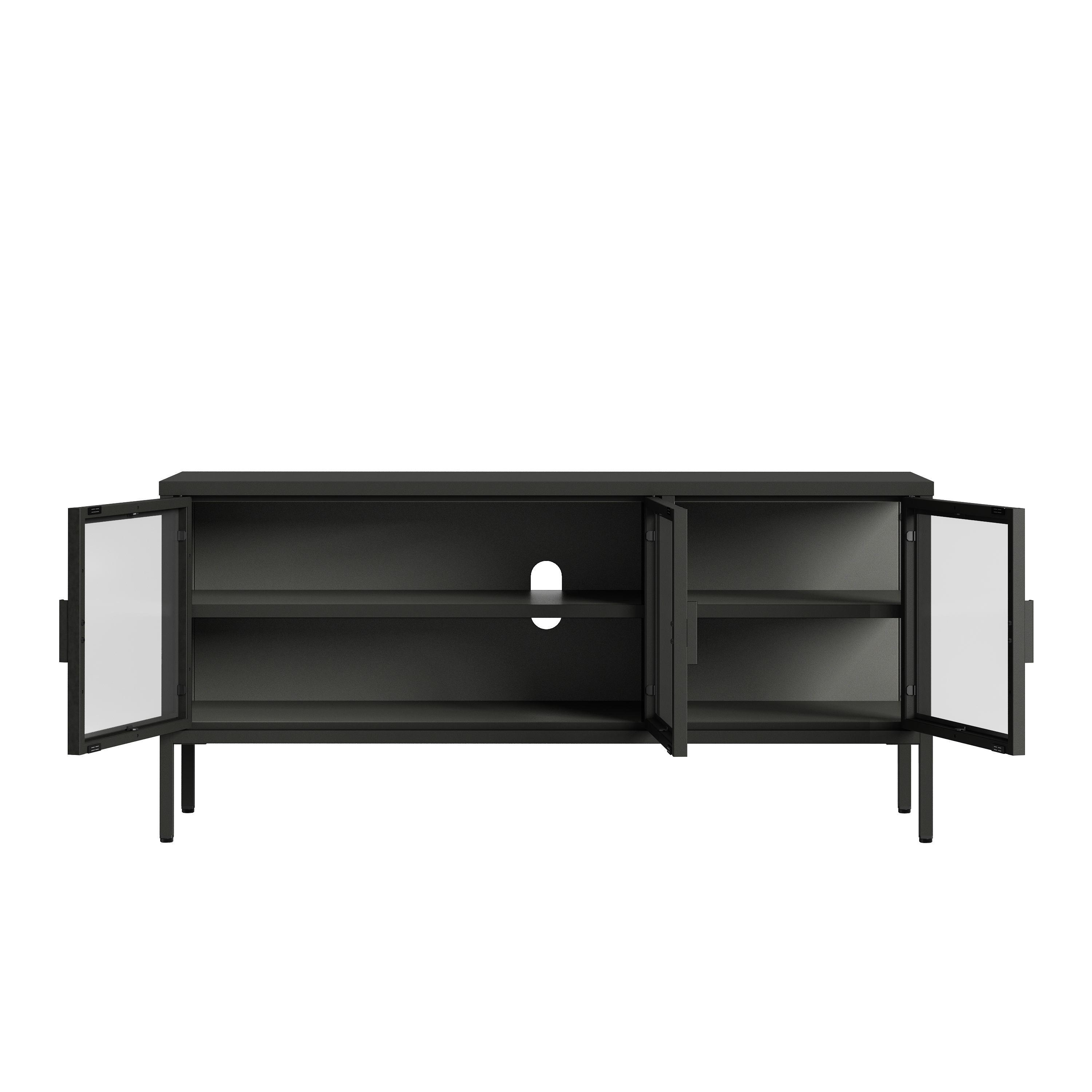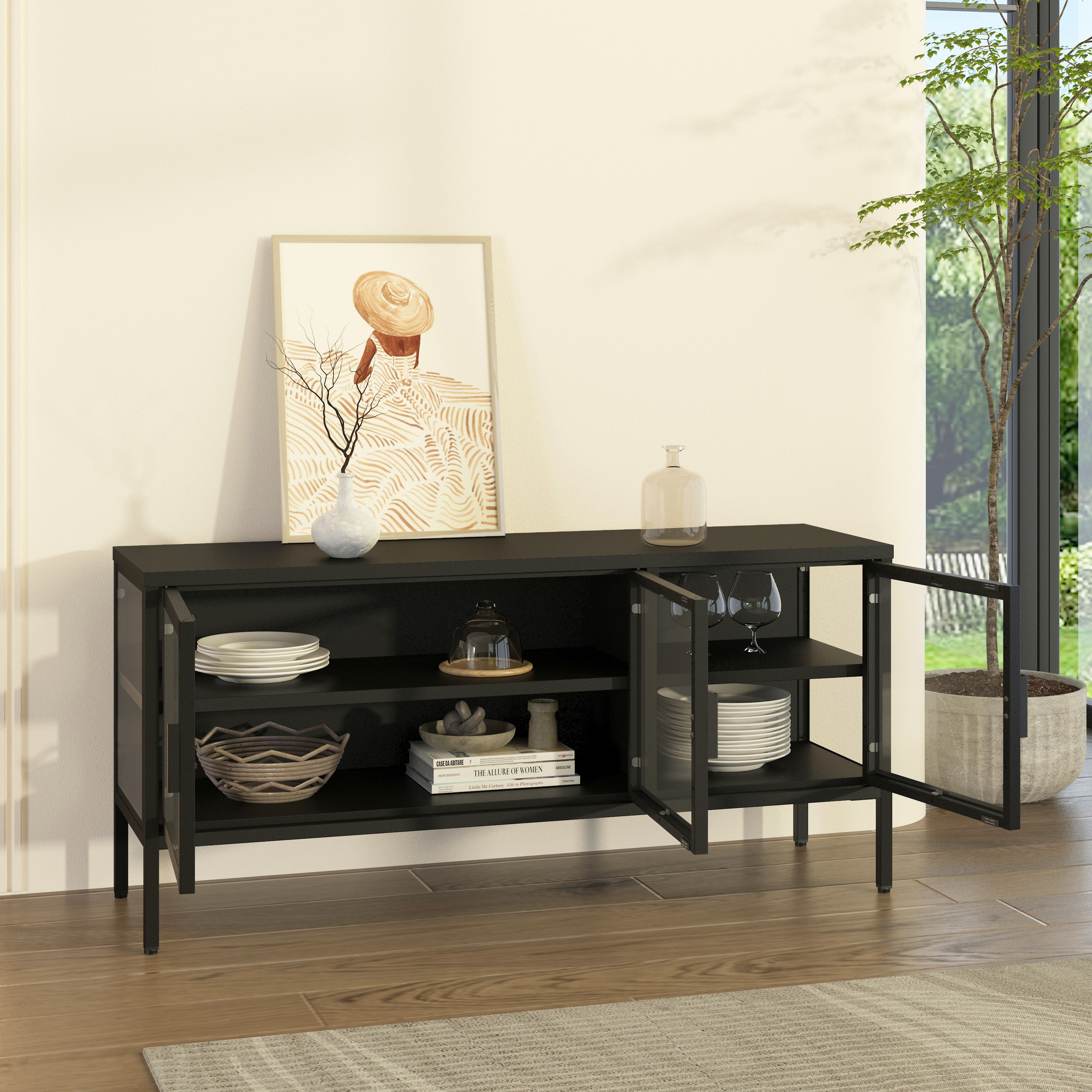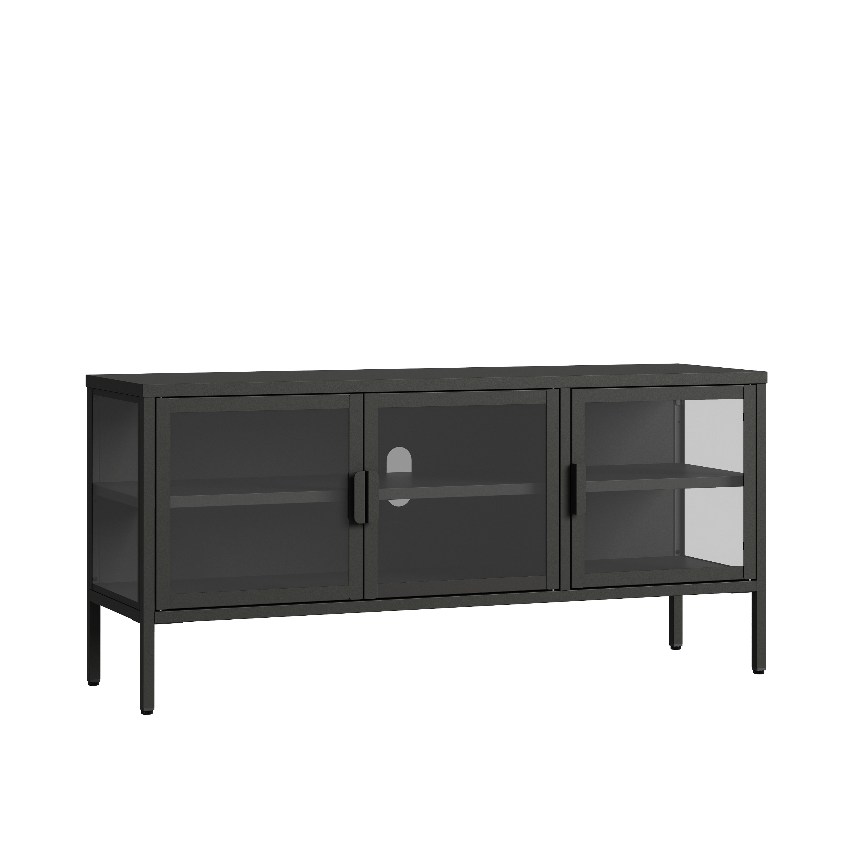 Vitrinen-Sideboard Borshavisa Stahl 3-türig 55x118x35 cm Schwarz [en.casa]