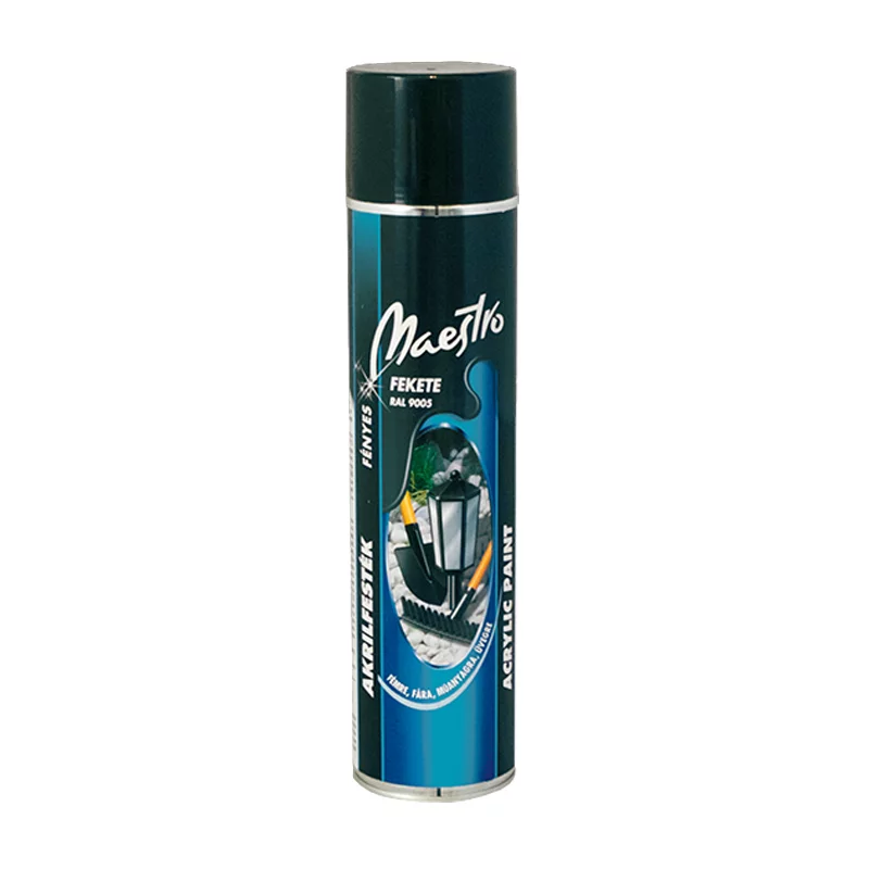 Vopsea acrilica spray Maestro 600 ml, negru lucios RAL9005