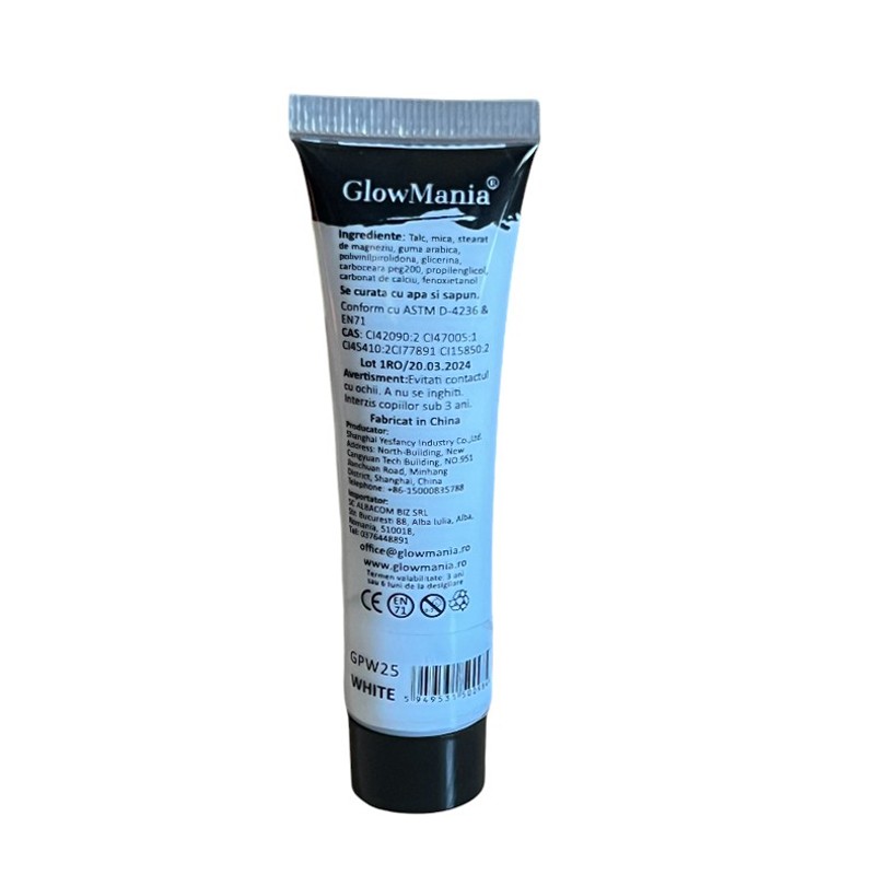 Vopsea glow uv neon, cantitate 25 ml, alba, pentru corp MultiMark GlobalProd