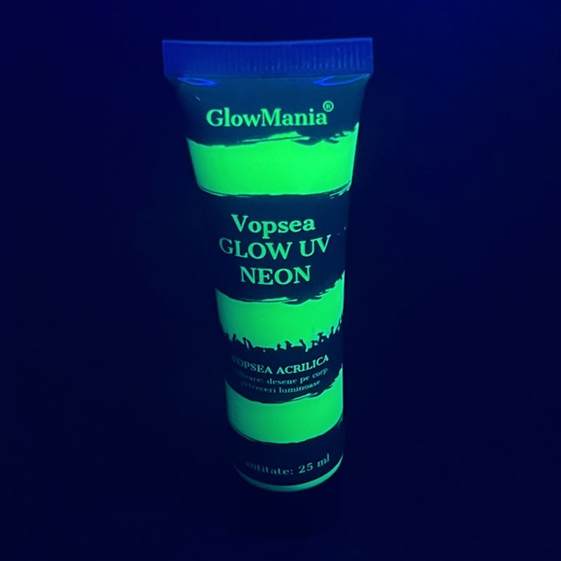 - Tip: vopsea glow UV neon (pe bază de apă)