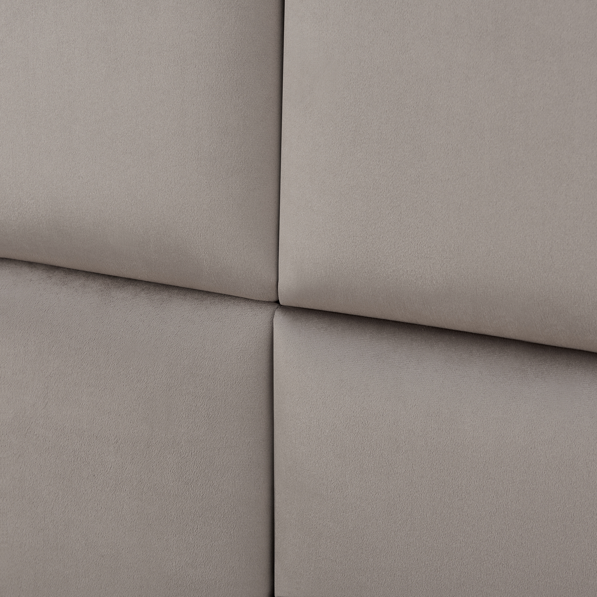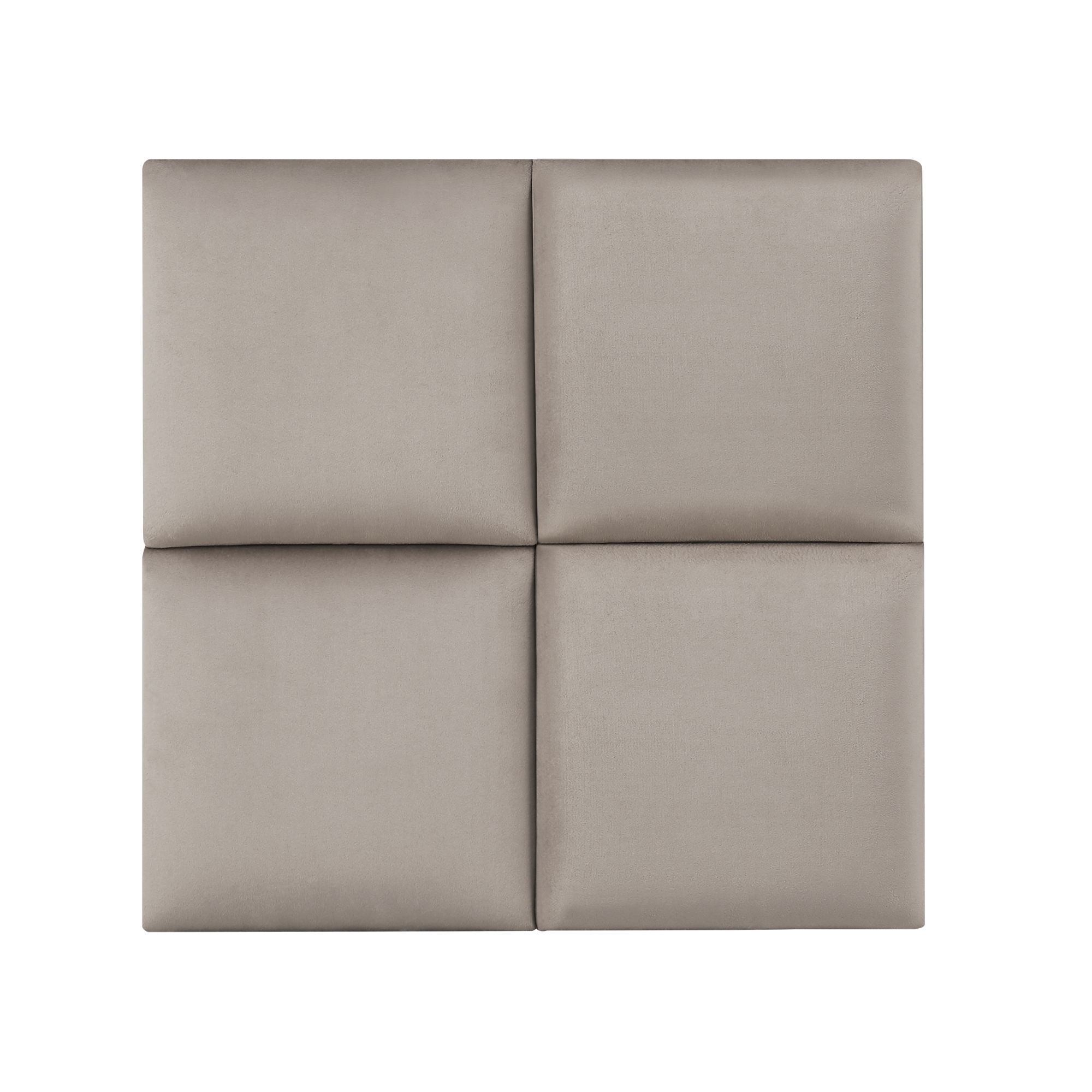 Das Set besteht aus vier einzelnen Kissen, deren Rückseite mit einer stabilen MDF-Platte versehen ist. Durch den Einsatz von Montagekleber lassen sich die Polsterpaneele schnell und einfach an der Wand anbringen, ganz ohne Bohren.