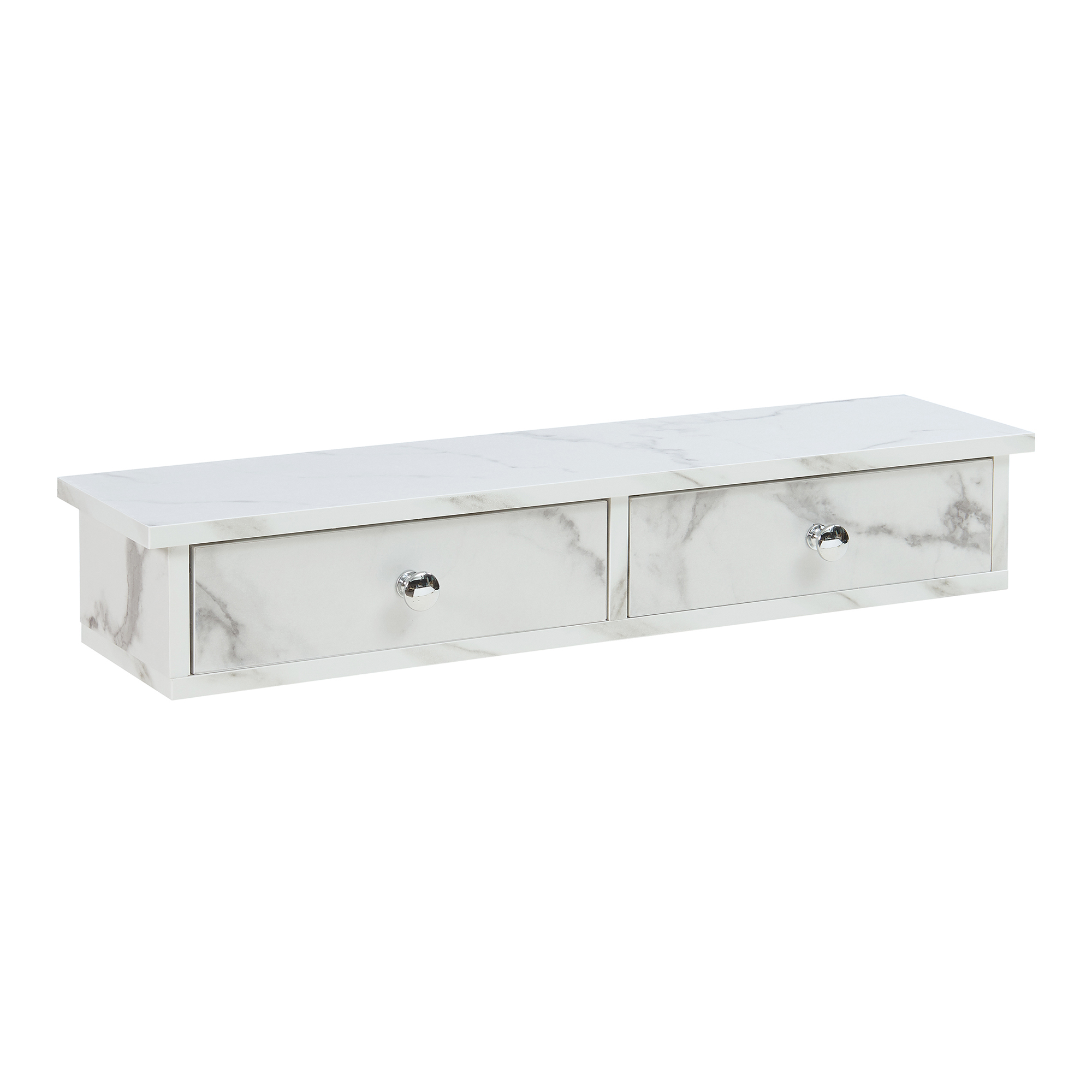 Wandregal Geeste 60x15x10 cm mit 2 Schubladen Marmoroptik, weiß [en.casa]