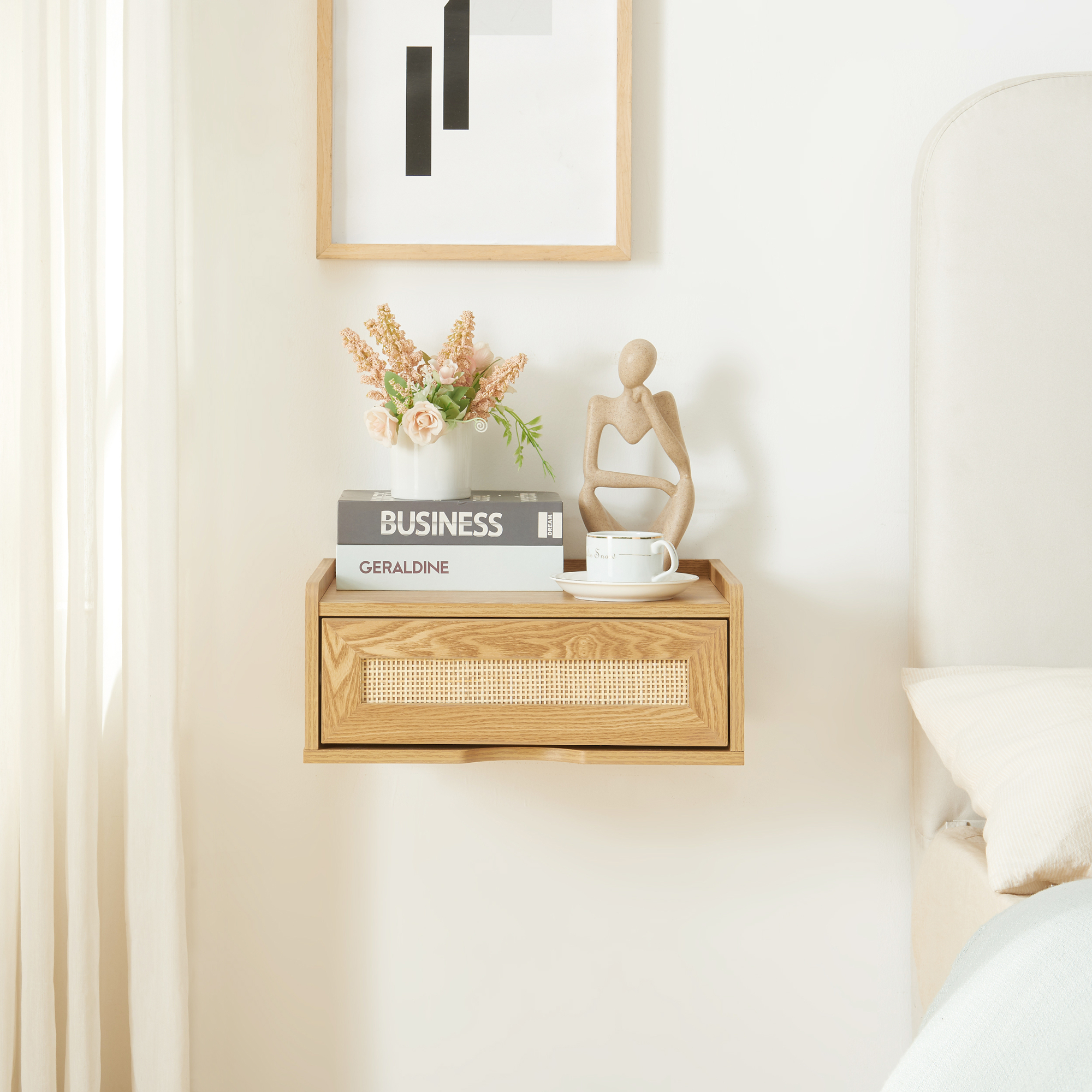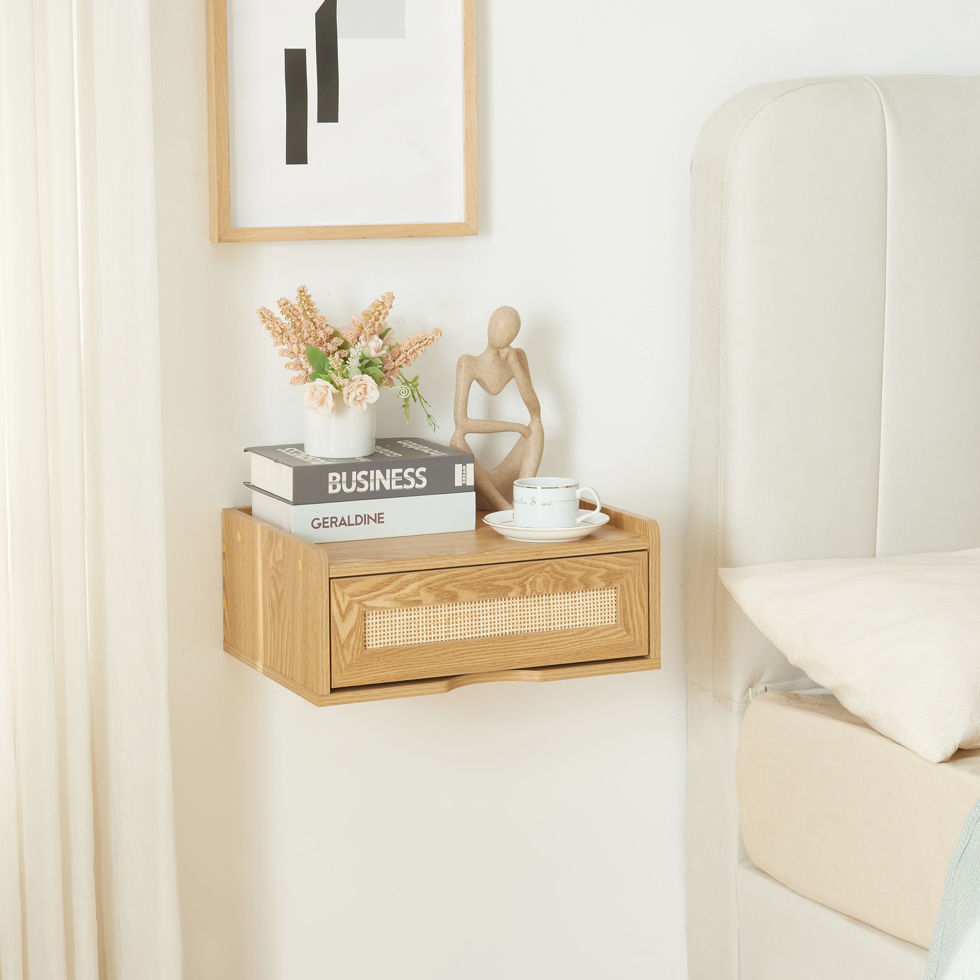 Das praktische Wandregal mit integrierter Schublade ist eine clevere Lösung, um zusätzlichen Stauraum in Ihren Räumen zu schaffen, ohne wertvolle Bodenfläche zu opfern und bietet eine vielseitige Möglichkeit, Ihre Gegenstände stilvoll zu organisieren.