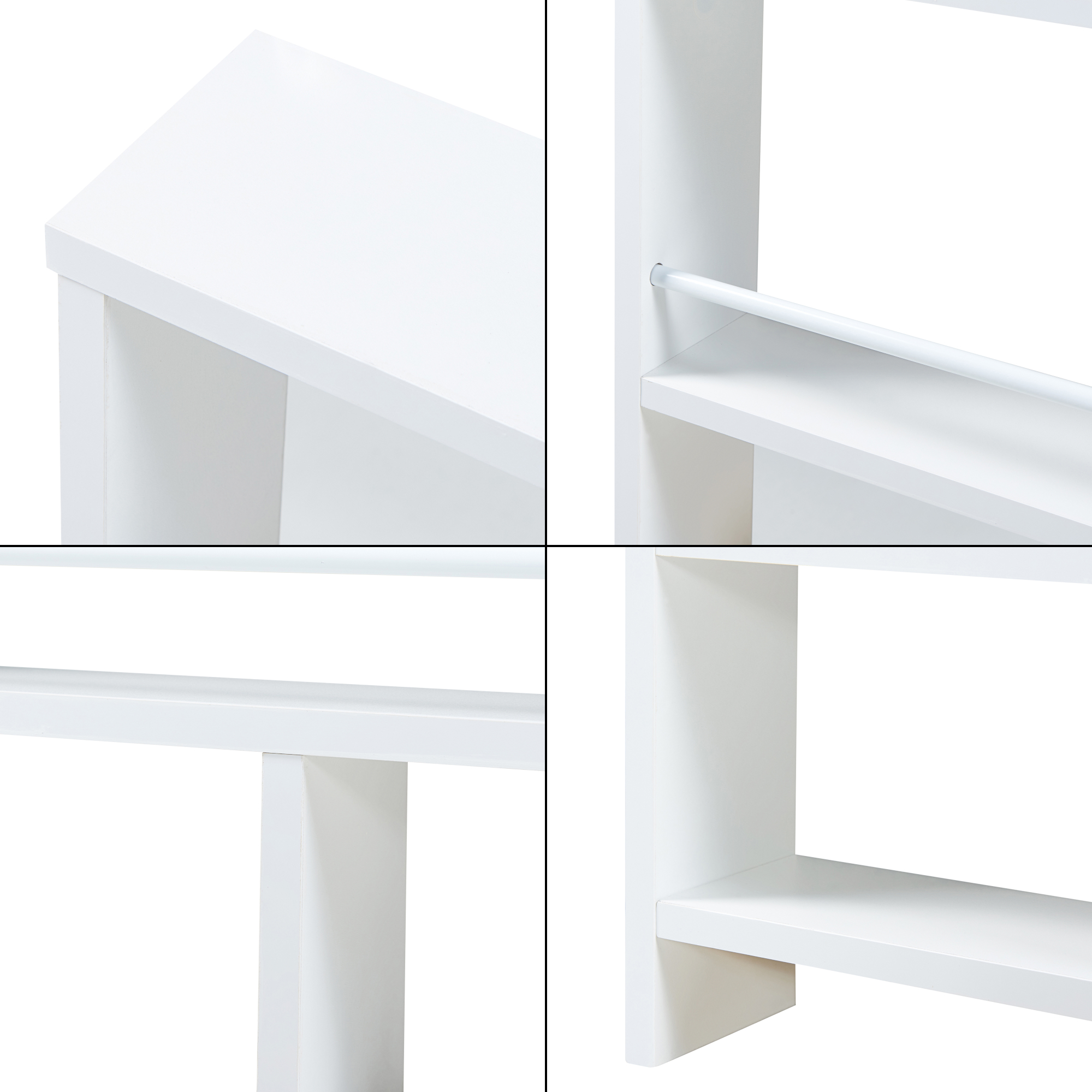 Es verfügt über drei großzügige Ablagefächer, die ausreichend Platz bieten, um Ihre Gegenstände ordentlich zu verstauen. Das Regal bietet vielfältige Verwendungsmöglichkeiten und die Metallstange des oberen Ablagefachs sorgt dafür, dass Objekte nicht herunterfallen.