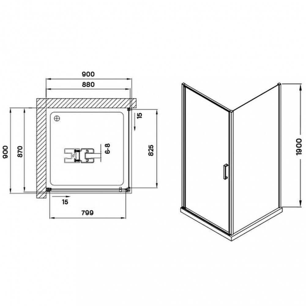 Wellis Cabină de duș Quadrum pătrată cu o singură ușă, cu strat de acoperire Easy Clean, fără cădiță de duș Mobalis Homvera