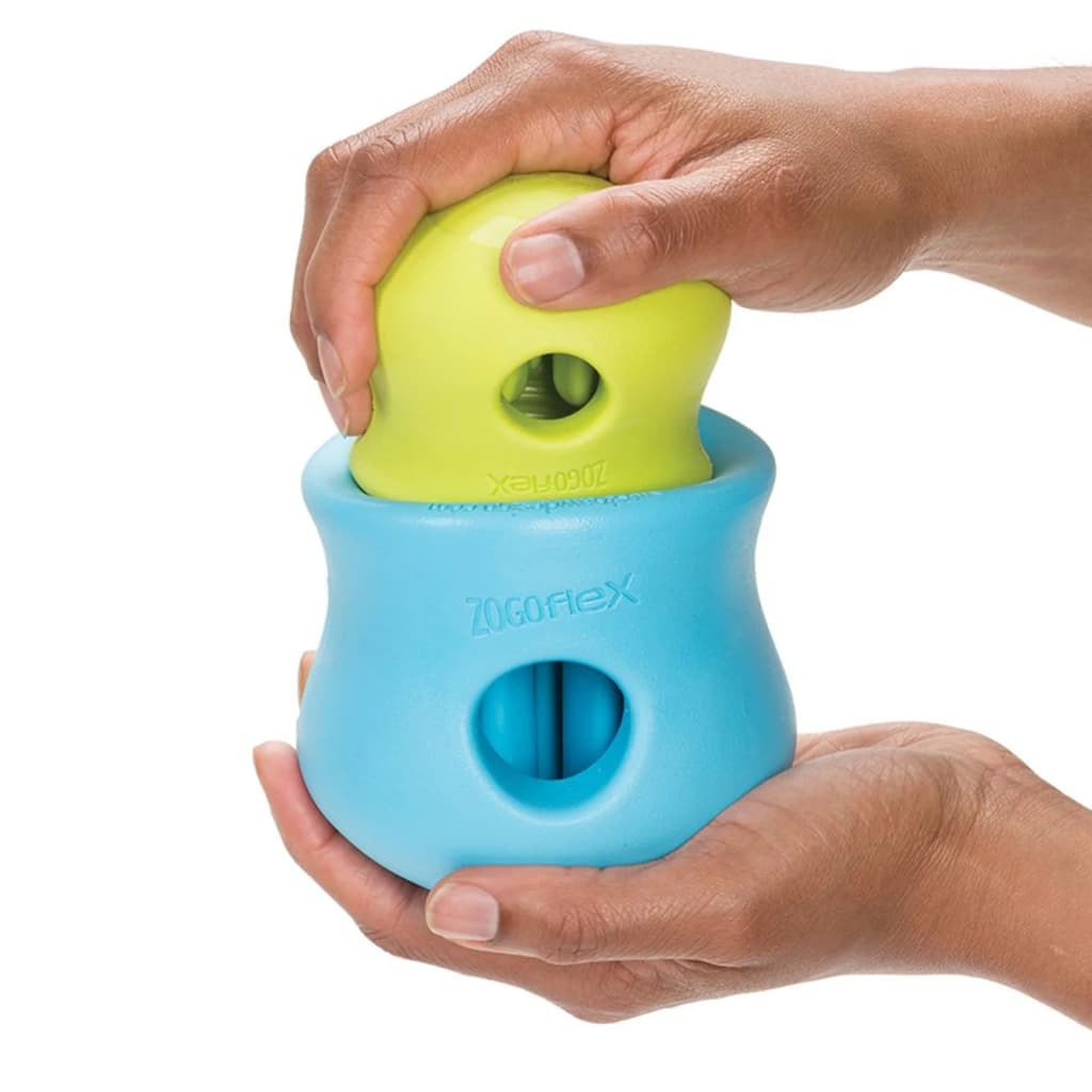 Aceasta jucărie Toppl este dură - făcută pentru a rezista unor colți înfricoșători! Această jucărie mică pentru câini Toppl de la West Paw, de culoare verde Granny smith, este realizată din Zogoflex, un material ultra rezistent, flexibil, plutitor, ce poate fi reciclat.
