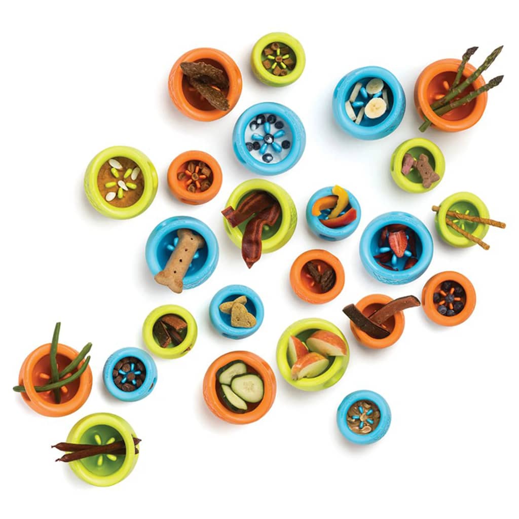 Culoarea vie a acestei jucării interactive pentru câini o face ușor de observat în apă, iarbă sau zăpadă. Este perfectă pentru câinele dvs., să-și scrâșnească dinții fără să-și strice gingiile sau să distrugă jucăria. Puteţi umple jucăria pentru câini cu hrană uscată sau cu gustări, dar, de asemenea, poate fi umplută și cu carne sau produse lactate, apoi congelați-o. Aduce fericire și satisfacție câinelui dvs., ţinându-l ocupat ore în șir. Fără BPA și ftalați și sunt potrivite pentru mașina de spălat vase.