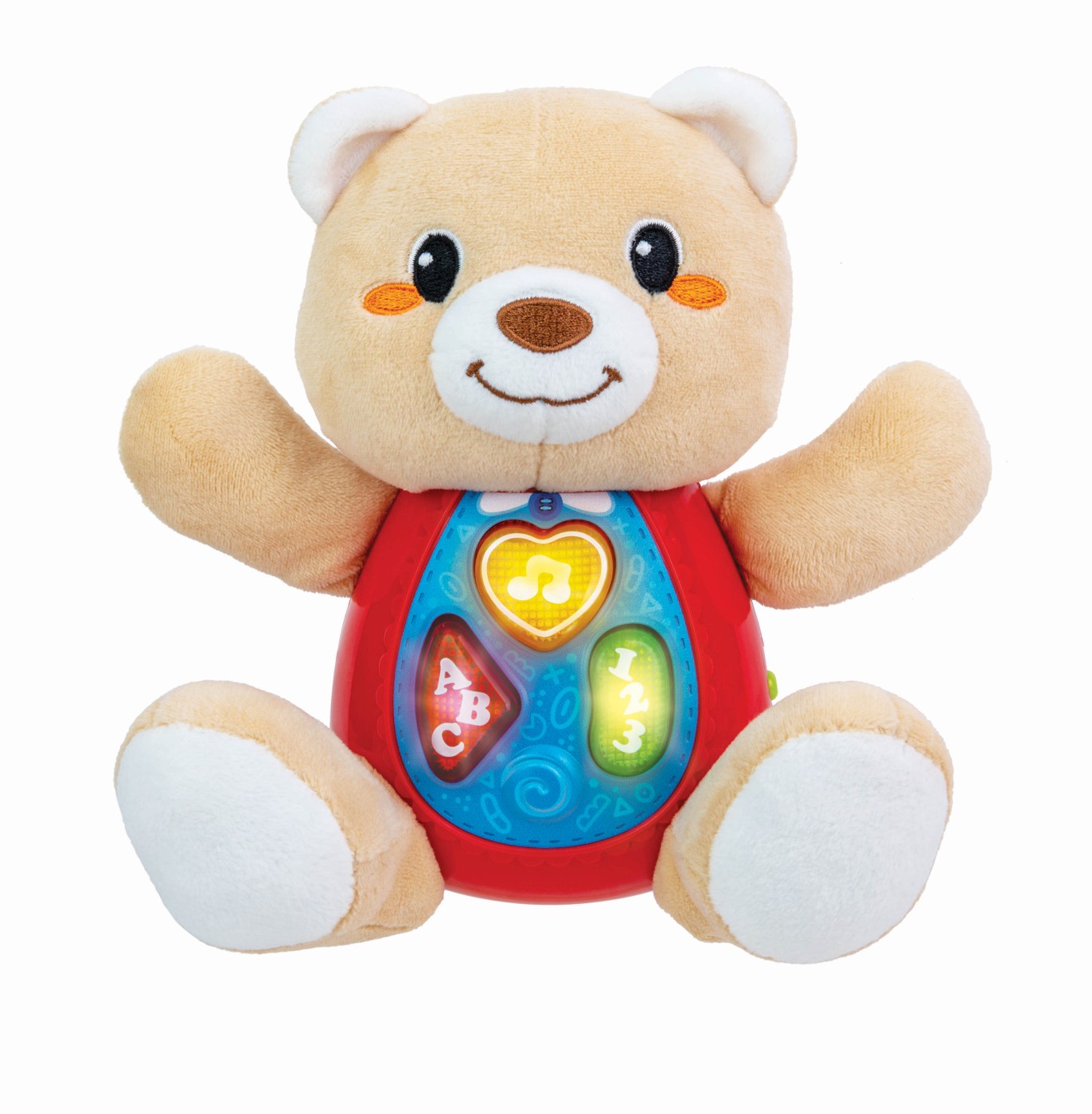 Descoperiti ursuletul interactiv si educativ perfect pentru bebelusii incepand cu varsta de 3 luni. Acest ursulet inovator este conceput pentru a stimula dezvoltarea cognitiva si senzoriala a celor mici, oferindu-le in acelasi timp ore intregi de distractie si invatare. Ursuletul este echipat cu trei butoane luminoase care capteaza imediat atentia copiilor. Aceste butoane nu doar stralucesc, ci si activeaza fraze cu rime si invatare simpla. Pe langa frazele cu rime, ursuletul include si o varietate de melodii distractive si vesele. Ursuletul este conceput pentru a fi usor de manevrat de catre cei mici. Butoanele luminoase sunt mari si usor de apasat, incurajand coordonarea mana-ochi si dezvoltarea abilitatilor motorii fine. Cand copiii apasa pe butoane, sunt recompensati cu lumini, sunete si fraze, incurajand explorarea si invatarea prin joc. In plus, ursuletul este durabil si rezistent, fiind construit pentru a face fata entuziasmului si energiei copiilor mici. Culorile vii si designul atractiv sunt menite sa atraga atentia si sa mentina interesul celor mici pentru perioade lungi de timp. Recomandat pentru copiii cu varsta de cel putin 3 luni, acest ursulet interactiv este un instrument excelent pentru a sustine dezvoltarea timpurie a copiilor, combinand invatarea cu distractia intr-un mod placut si captivant.