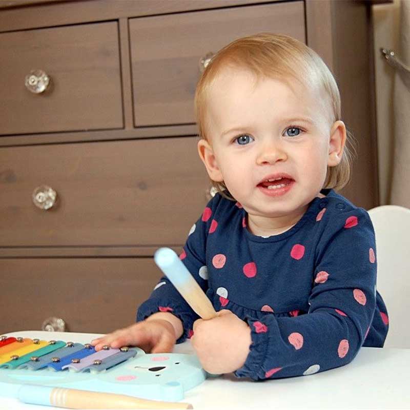 Xilofonul muzical Ursulet, din lemn si metal Adam Toys N4024 este creat special pentru simtul auditiv al celor mici. Copilul descopera 8 note muzicale, sunete realiste.