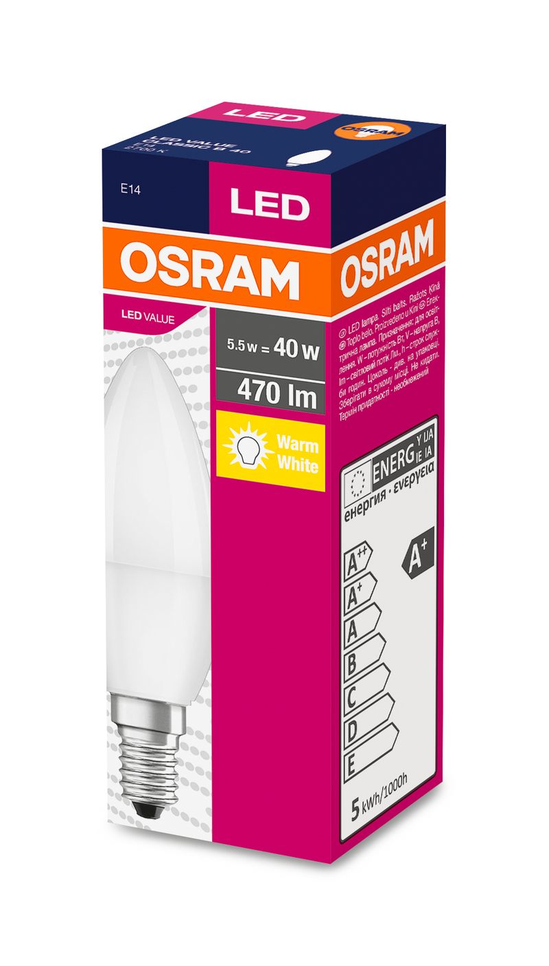 Žiarovka OSRAM® LED FR 040 (ean6453) non-dim, 4,9W/827 E14 2700K Value CLASSIC B