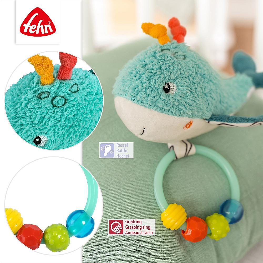 Zornăitoare pentru bebeluși Balena somnoroasă Fehn, 17 cm, 3 luni+